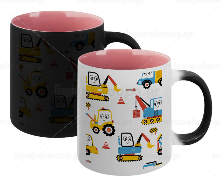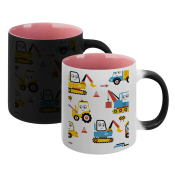 Hand drawing building truck, Κούπα Μαγική εσωτερικό ΡΟΖ, κεραμική 330ml που αλλάζει χρώμα με το ζεστό ρόφημα