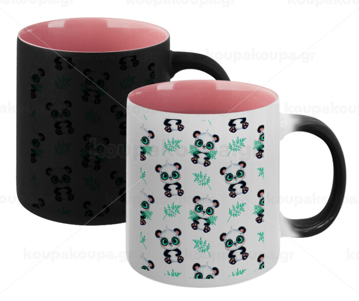 Panda, Κούπα Μαγική εσωτερικό ΡΟΖ, κεραμική 330ml που αλλάζει χρώμα με το ζεστό ρόφημα