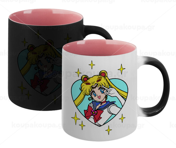 Sailor Moon star, Κούπα Μαγική εσωτερικό ΡΟΖ, κεραμική 330ml που αλλάζει χρώμα με το ζεστό ρόφημα
