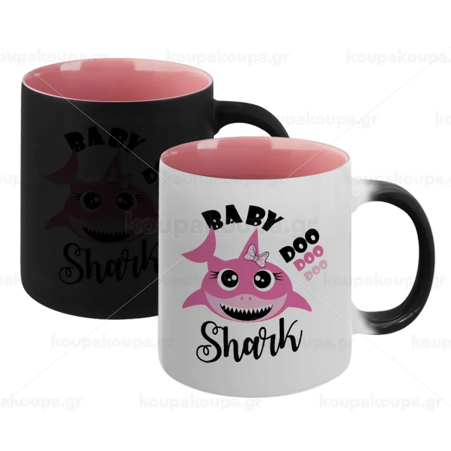 Baby Shark (girl), Κούπα Μαγική εσωτερικό ΡΟΖ, κεραμική 330ml που αλλάζει χρώμα με το ζεστό ρόφημα
