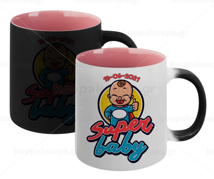 Super baby., Κούπα Μαγική εσωτερικό ΡΟΖ, κεραμική 330ml που αλλάζει χρώμα με το ζεστό ρόφημα