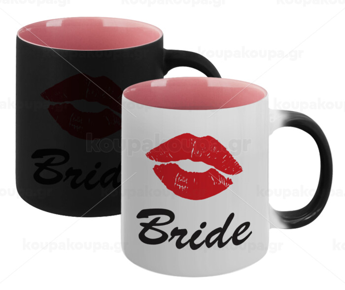 Bride kiss, Κούπα Μαγική εσωτερικό ΡΟΖ, κεραμική 330ml που αλλάζει χρώμα με το ζεστό ρόφημα