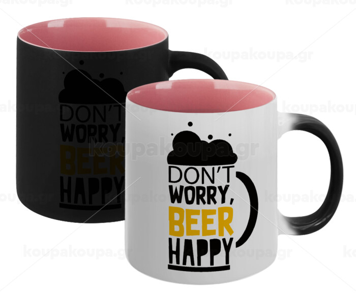 Don't worry BEER Happy, Κούπα Μαγική εσωτερικό ΡΟΖ, κεραμική 330ml που αλλάζει χρώμα με το ζεστό ρόφημα