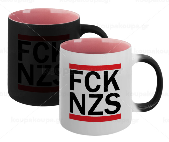 FCK NZS, Κούπα Μαγική εσωτερικό ΡΟΖ, κεραμική 330ml που αλλάζει χρώμα με το ζεστό ρόφημα