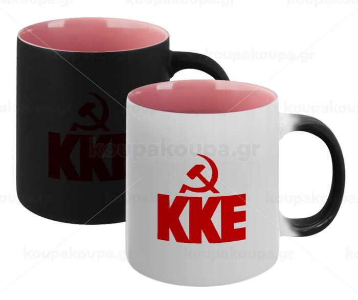 ΚΚΕ, Κούπα Μαγική εσωτερικό ΡΟΖ, κεραμική 330ml που αλλάζει χρώμα με το ζεστό ρόφημα
