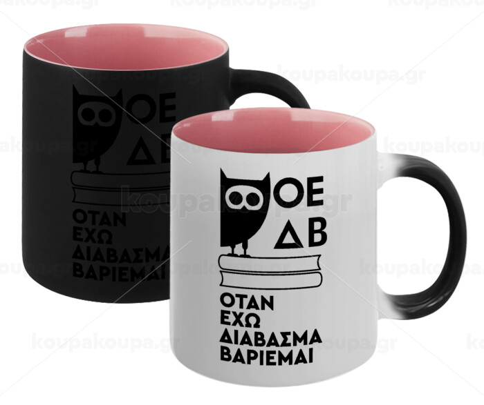 ΟΕΔΒ, Κούπα Μαγική εσωτερικό ΡΟΖ, κεραμική 330ml που αλλάζει χρώμα με το ζεστό ρόφημα
