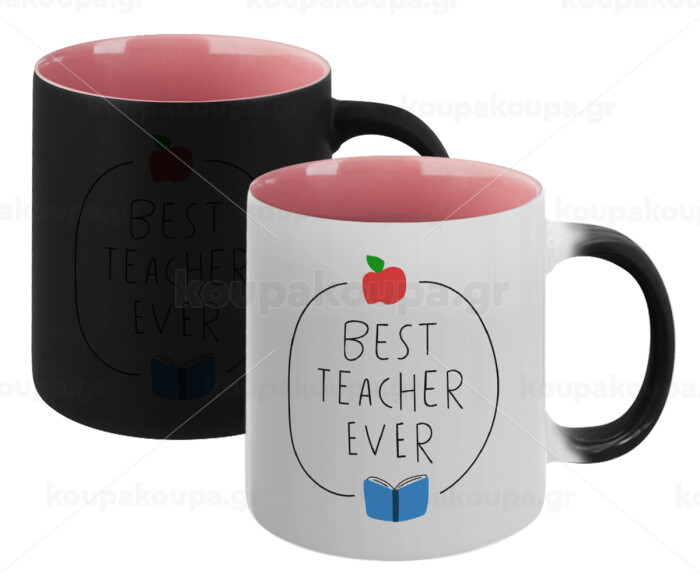Best teacher ever, Κούπα Μαγική εσωτερικό ΡΟΖ, κεραμική 330ml που αλλάζει χρώμα με το ζεστό ρόφημα
