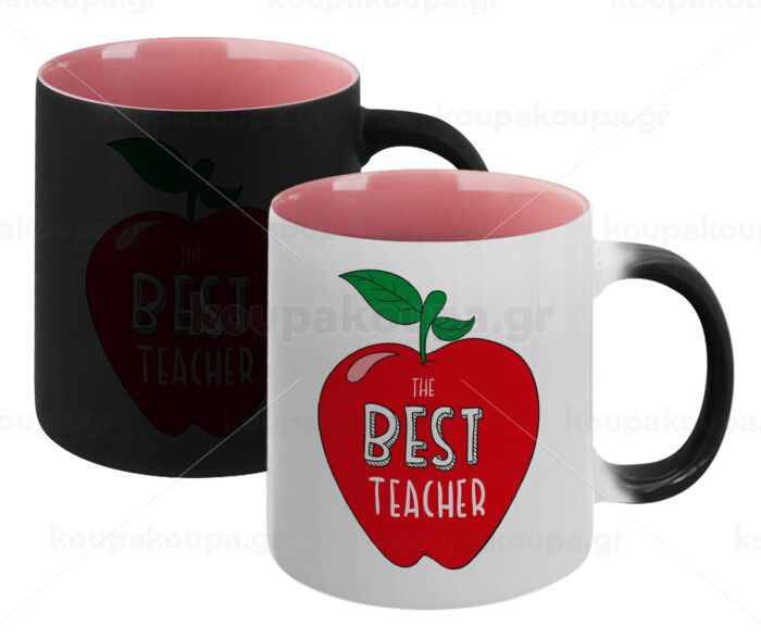 Best teacher, Κούπα Μαγική εσωτερικό ΡΟΖ, κεραμική 330ml που αλλάζει χρώμα με το ζεστό ρόφημα
