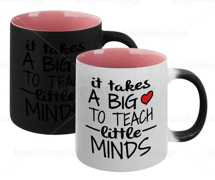 It takes big heart to teach little minds, Κούπα Μαγική εσωτερικό ΡΟΖ, κεραμική 330ml που αλλάζει χρώμα με το ζεστό ρόφημα