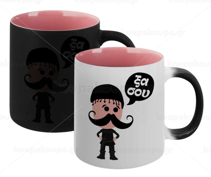 Κρητικός "Ξα σου", Κούπα Μαγική εσωτερικό ΡΟΖ, κεραμική 330ml που αλλάζει χρώμα με το ζεστό ρόφημα