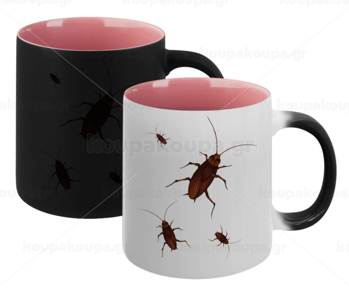 Κατσαρίδα, Κούπα Μαγική εσωτερικό ΡΟΖ, κεραμική 330ml που αλλάζει χρώμα με το ζεστό ρόφημα