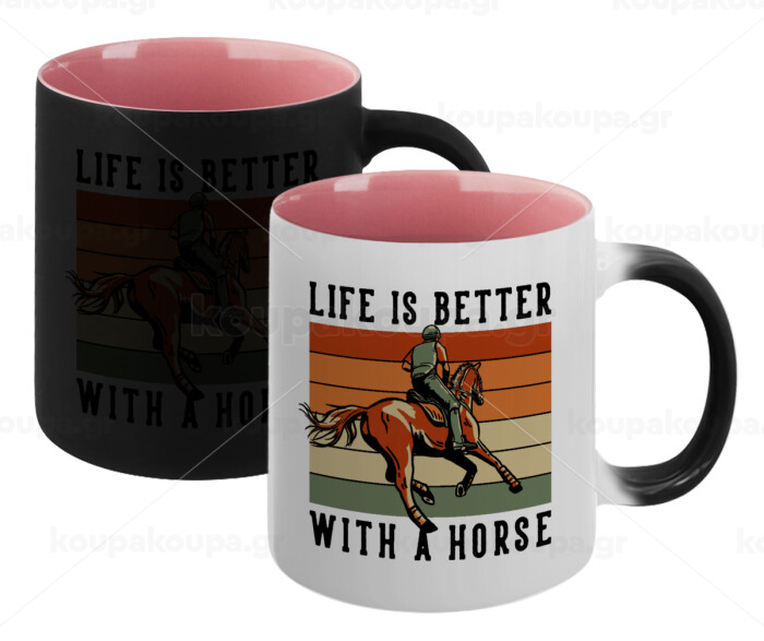 Life is Better with a Horse, Κούπα Μαγική εσωτερικό ΡΟΖ, κεραμική 330ml που αλλάζει χρώμα με το ζεστό ρόφημα