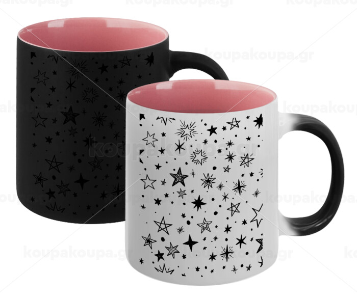 Doodle Stars, Κούπα Μαγική εσωτερικό ΡΟΖ, κεραμική 330ml που αλλάζει χρώμα με το ζεστό ρόφημα