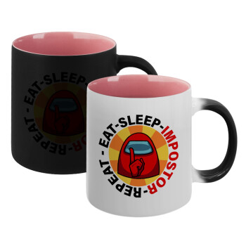 Among US Eat Sleep Repeat Impostor, Κούπα Μαγική εσωτερικό ΡΟΖ, κεραμική 330ml που αλλάζει χρώμα με το ζεστό ρόφημα