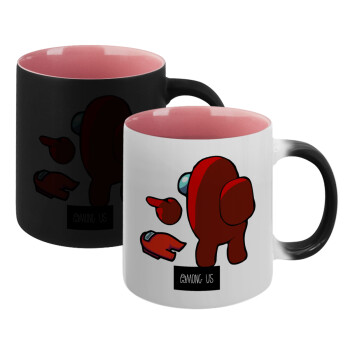 Among US i am impostor..., Κούπα Μαγική εσωτερικό ΡΟΖ, κεραμική 330ml που αλλάζει χρώμα με το ζεστό ρόφημα