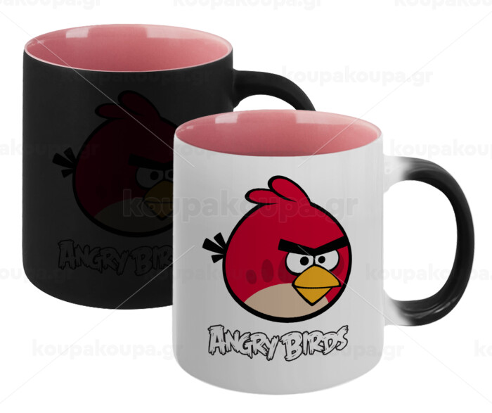 Angry birds Terence, Κούπα Μαγική εσωτερικό ΡΟΖ, κεραμική 330ml που αλλάζει χρώμα με το ζεστό ρόφημα