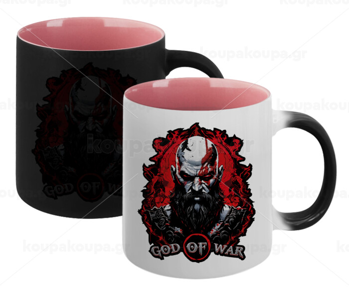 God of war, Κούπα Μαγική εσωτερικό ΡΟΖ, κεραμική 330ml που αλλάζει χρώμα με το ζεστό ρόφημα