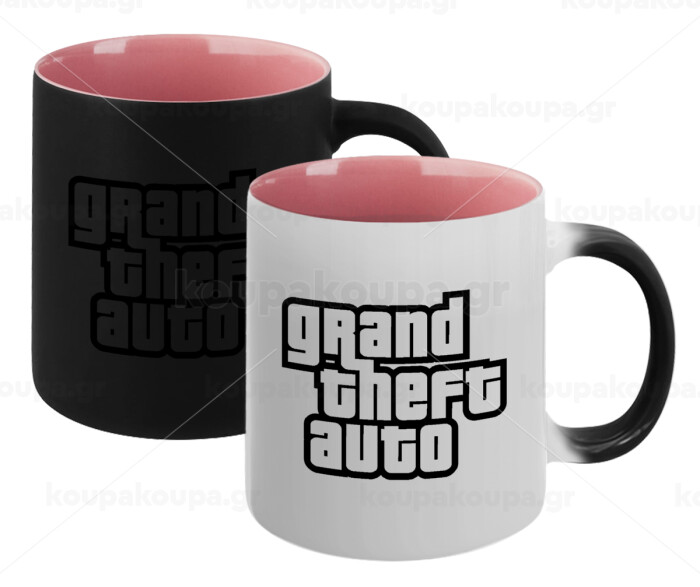 GTA (grand theft auto), Κούπα Μαγική εσωτερικό ΡΟΖ, κεραμική 330ml που αλλάζει χρώμα με το ζεστό ρόφημα
