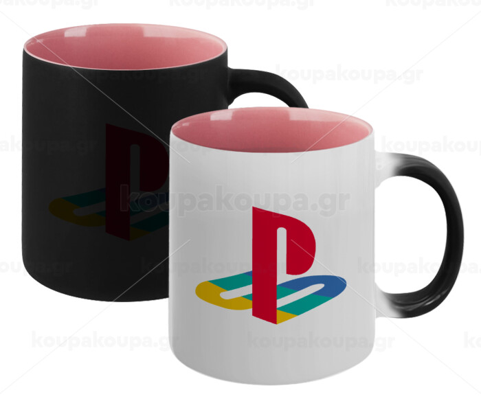 Playstation, Κούπα Μαγική εσωτερικό ΡΟΖ, κεραμική 330ml που αλλάζει χρώμα με το ζεστό ρόφημα