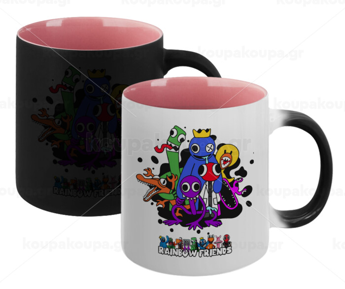 Rainbow friends, Κούπα Μαγική εσωτερικό ΡΟΖ, κεραμική 330ml που αλλάζει χρώμα με το ζεστό ρόφημα