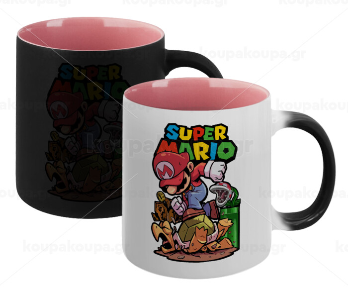 Super mario Jump, Κούπα Μαγική εσωτερικό ΡΟΖ, κεραμική 330ml που αλλάζει χρώμα με το ζεστό ρόφημα