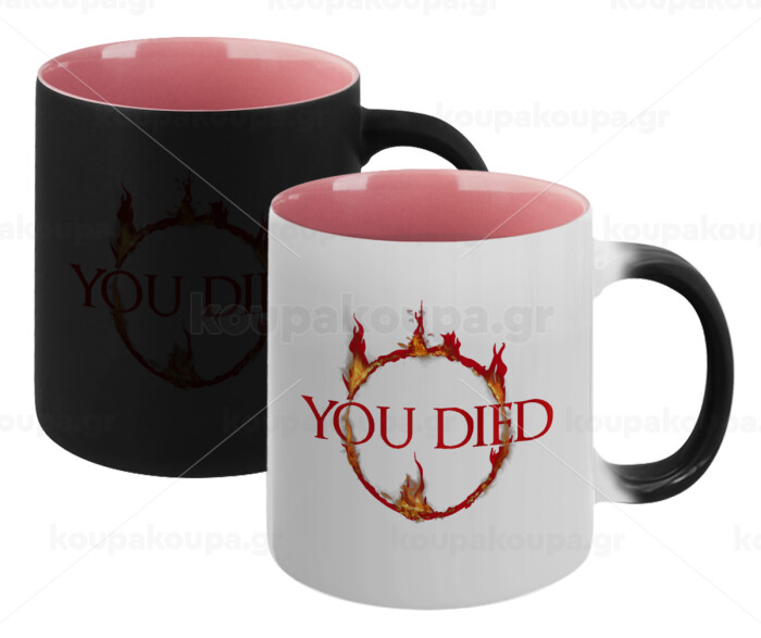 You Died | Dark Souls, Κούπα Μαγική εσωτερικό ΡΟΖ, κεραμική 330ml που αλλάζει χρώμα με το ζεστό ρόφημα