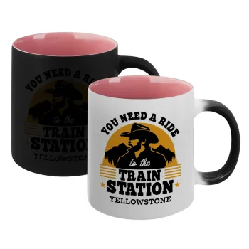 You need a ride to the train station, Κούπα Μαγική εσωτερικό ΡΟΖ, κεραμική 330ml που αλλάζει χρώμα με το ζεστό ρόφημα