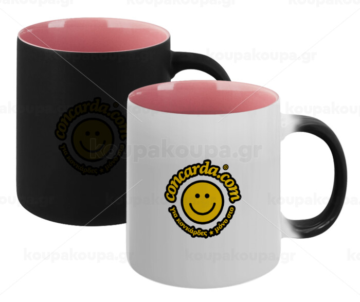 Concarda, Κούπα Μαγική εσωτερικό ΡΟΖ, κεραμική 330ml που αλλάζει χρώμα με το ζεστό ρόφημα