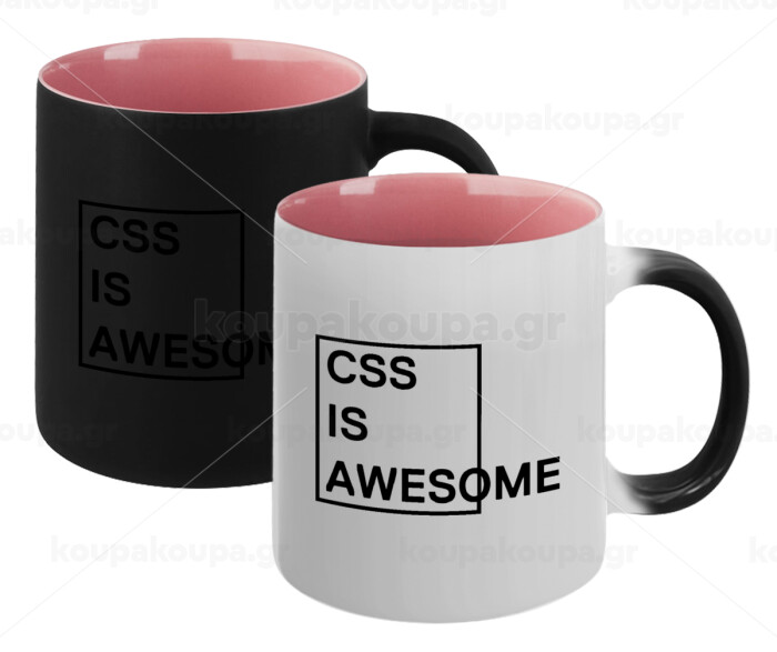 CSS is awesome, Κούπα Μαγική εσωτερικό ΡΟΖ, κεραμική 330ml που αλλάζει χρώμα με το ζεστό ρόφημα