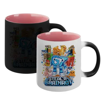 Steal a Brainrot Six Seven, Κούπα Μαγική εσωτερικό ΡΟΖ, κεραμική 330ml που αλλάζει χρώμα με το ζεστό ρόφημα