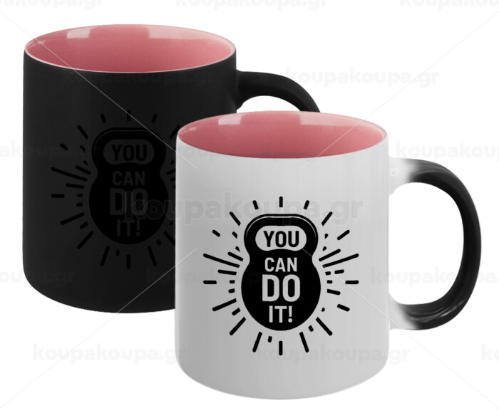 You can do it, Κούπα Μαγική εσωτερικό ΡΟΖ, κεραμική 330ml που αλλάζει χρώμα με το ζεστό ρόφημα