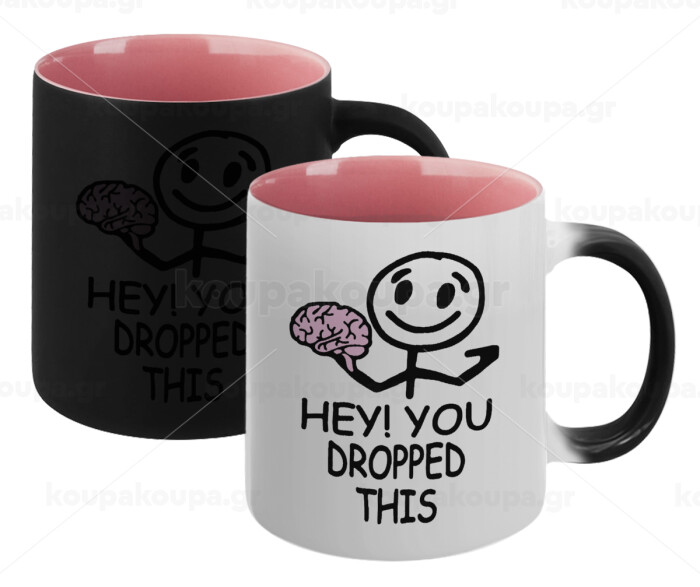 Hey! You dropped this, Κούπα Μαγική εσωτερικό ΡΟΖ, κεραμική 330ml που αλλάζει χρώμα με το ζεστό ρόφημα