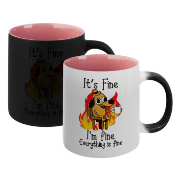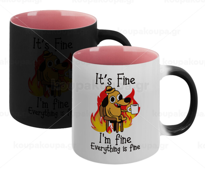 It's Fine I'm Fine Everything Is Fine, Κούπα Μαγική εσωτερικό ΡΟΖ, κεραμική 330ml που αλλάζει χρώμα με το ζεστό ρόφημα