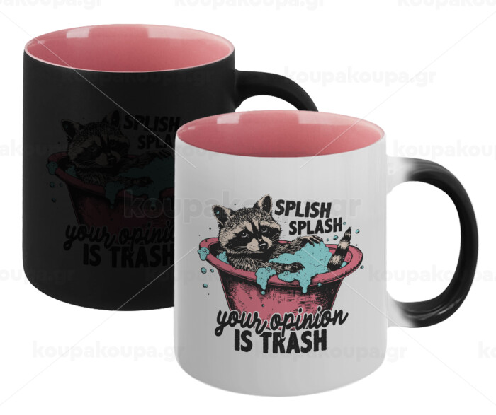 Splish splash your opinion is trash, Κούπα Μαγική εσωτερικό ΡΟΖ, κεραμική 330ml που αλλάζει χρώμα με το ζεστό ρόφημα