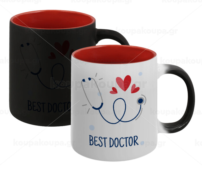Best Doctor, Κούπα Μαγική εσωτερικό κόκκινο, κεραμική, 330ml που αλλάζει χρώμα με το ζεστό ρόφημα
