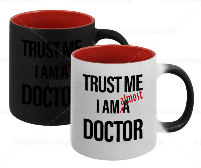 Trust me, i am (almost) Doctor, Κούπα Μαγική εσωτερικό κόκκινο, κεραμική, 330ml που αλλάζει χρώμα με το ζεστό ρόφημα