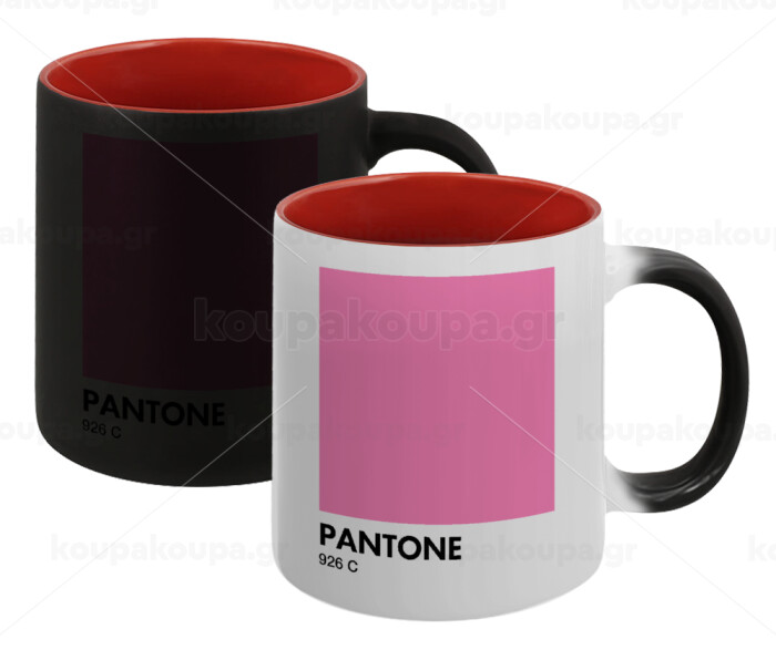 PANTONE Pink C, Κούπα Μαγική εσωτερικό κόκκινο, κεραμική, 330ml που αλλάζει χρώμα με το ζεστό ρόφημα