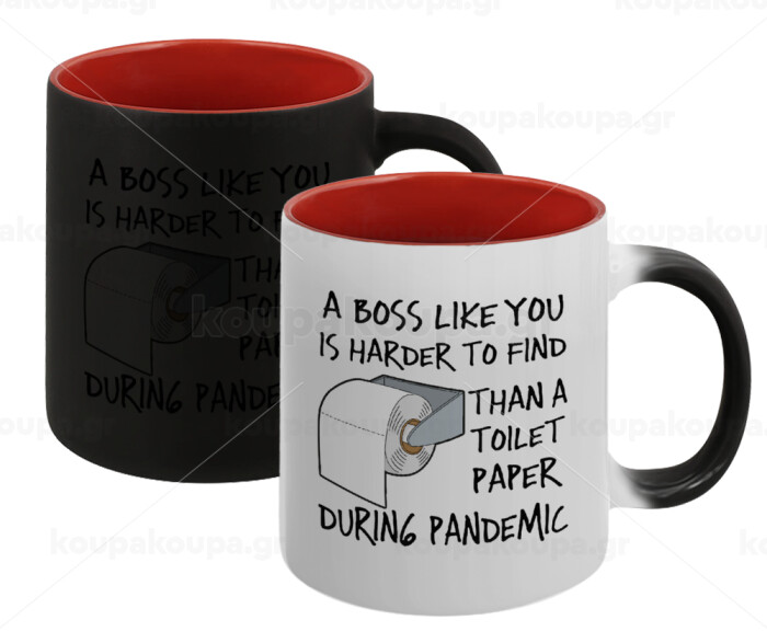 A boss like you is harder to find, than a toilet paper during pandemic, Κούπα Μαγική εσωτερικό κόκκινο, κεραμική, 330ml που αλλάζει χρώμα με το ζεστό ρόφημα