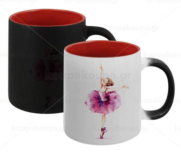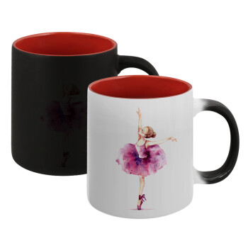 Ballerina watercolor, Κούπα Μαγική εσωτερικό κόκκινο, κεραμική, 330ml που αλλάζει χρώμα με το ζεστό ρόφημα