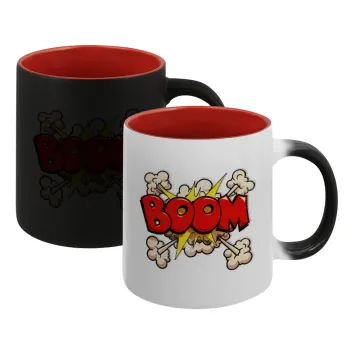BOOM!!!, Κούπα Μαγική εσωτερικό κόκκινο, κεραμική, 330ml που αλλάζει χρώμα με το ζεστό ρόφημα