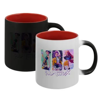 HUNTR/X K-pop girl group, Κούπα Μαγική εσωτερικό κόκκινο, κεραμική, 330ml που αλλάζει χρώμα με το ζεστό ρόφημα