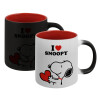 I LOVE SNOOPY, Κούπα Μαγική εσωτερικό κόκκινο, κεραμική, 330ml που αλλάζει χρώμα με το ζεστό ρόφημα