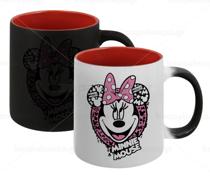 Minnie mouse, Κούπα Μαγική εσωτερικό κόκκινο, κεραμική, 330ml που αλλάζει χρώμα με το ζεστό ρόφημα