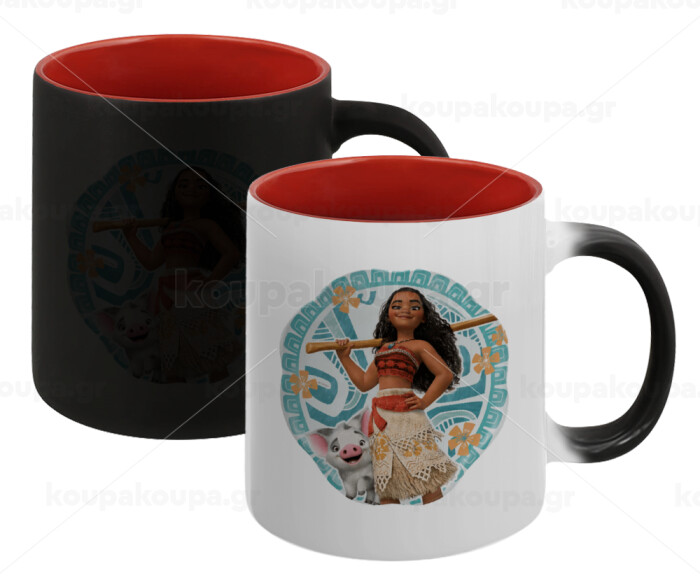 Moana, Κούπα Μαγική εσωτερικό κόκκινο, κεραμική, 330ml που αλλάζει χρώμα με το ζεστό ρόφημα