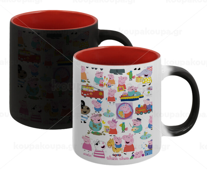 Peppa pig Characters, Κούπα Μαγική εσωτερικό κόκκινο, κεραμική, 330ml που αλλάζει χρώμα με το ζεστό ρόφημα