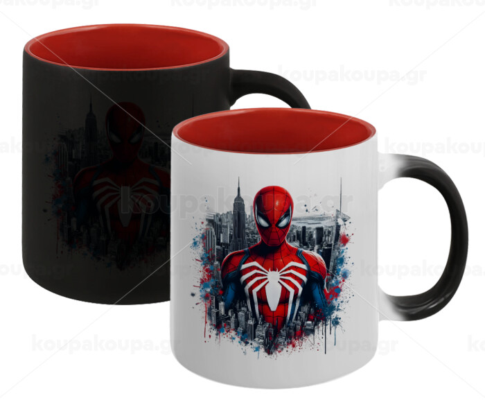 Spiderman City, Κούπα Μαγική εσωτερικό κόκκινο, κεραμική, 330ml που αλλάζει χρώμα με το ζεστό ρόφημα