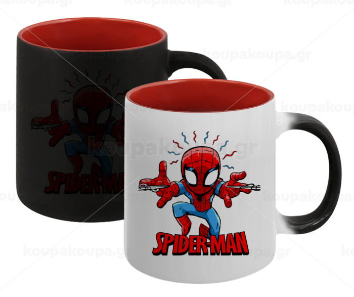 Spiderman flying, Κούπα Μαγική εσωτερικό κόκκινο, κεραμική, 330ml που αλλάζει χρώμα με το ζεστό ρόφημα