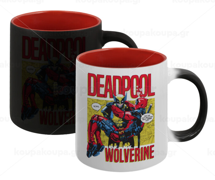Superhero Deadpool Wolverine, Κούπα Μαγική εσωτερικό κόκκινο, κεραμική, 330ml που αλλάζει χρώμα με το ζεστό ρόφημα