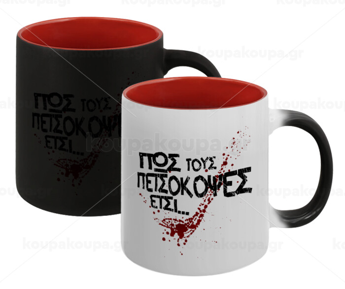 Πως τους πετσόκοψες έτσι..., Κούπα Μαγική εσωτερικό κόκκινο, κεραμική, 330ml που αλλάζει χρώμα με το ζεστό ρόφημα
