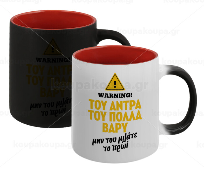 Του άντρα του πολλά βαρύ, Κούπα Μαγική εσωτερικό κόκκινο, κεραμική, 330ml που αλλάζει χρώμα με το ζεστό ρόφημα